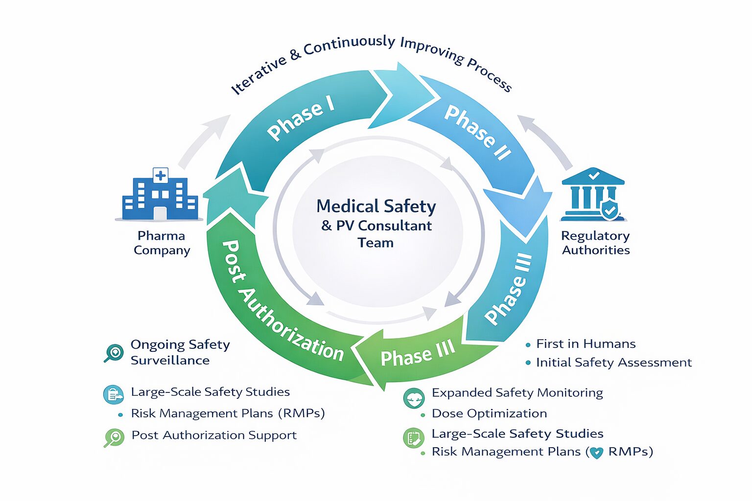 We drive Phase III and post-approval safety oversight that de-risks development, satisfies regulators, and protects patients.